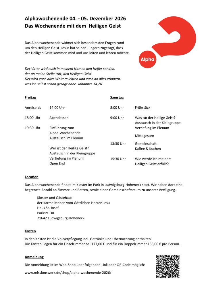 04. - 05. September Alpha Wochenende - Der Heilige Geist