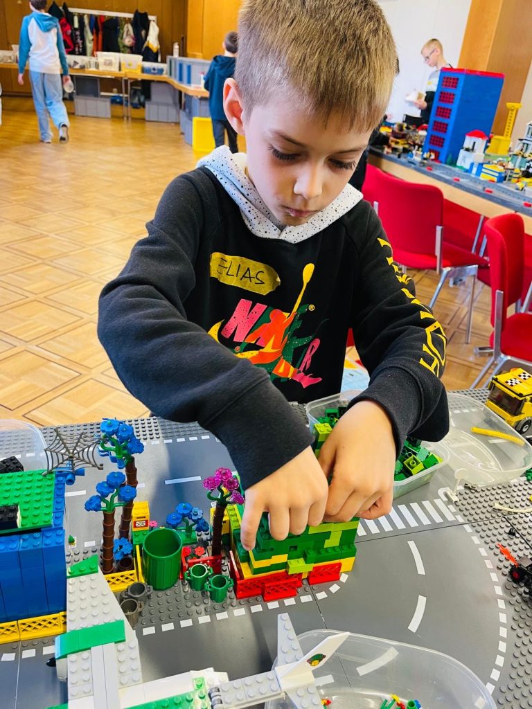 Nach einem Jahr Pause war es vom 03. – 05. Oktober 2025 wieder soweit: LEGO® Bautage im Missionswerk für Kinder von 8-13 Jahren. Knapp 40 junge LEGO® Bauer waren dabei, als es am Feiertag wieder losging. Voller Vorfreude auf über 100´000 bunte Steine, strömten die Kids zu uns und konnten es kaum abwarten, ihre kreativen Ideen in die Tat umzusetzen. Nach einer offiziellen Begrüßung, ein paar Regeln und dem gemeinsamen LEGO® Song ging es ab auf die Baustelle. Was die Kinder erwartete, ließ ihre Herzen höher schlagen: Ein großer Raum voller LEGO® Steine, der nur darauf wartete mit den kreativen Projekten der Kinder gefüllt zu werden. Und diese legten auch gleich los. So entstanden in Kürze die ersten Häuser, Autos und Bahnhöfe. Ein riesiges Stadion, eine große Kirche, zahlreiche Traumhäuser, eine Eisenbahn und viele andere, eigens oder nach Anleitung gebauten Bauwerke kamen stetig hinzu.